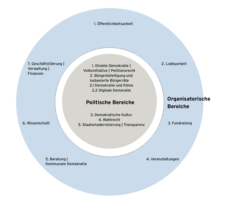 Demokratie heißt: Menschen handeln gleichberechtigt miteinander aus, wie sie als Gesellschaft leben wollen. Wir sind der Überzeugung, dass jeder Mensch das Recht und das Potenzial hat, die Entscheidungen mit zu beeinflussen, die ihn und die Gesamtheit der Gesellschaft betreffen. Unsere Demokratie muss ständig weiterentwickelt werden. Fair ausgestaltete Verfahren, aber auch die Erfahrung individueller Selbstwirksamkeit in demokratischen Erlebnissen sind Triebfedern dieser Entwicklung.