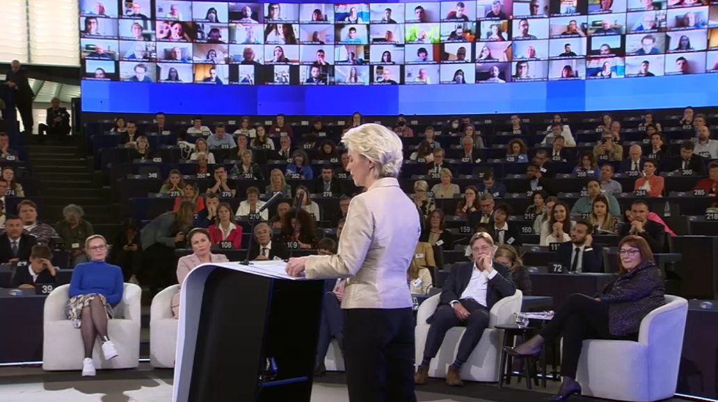 EU-Kommissionspräsidentin Ursula von der Leyen will die Bürgerinnen und Bürger der Europäischen Union künftig stärker in wichtige politische Entscheidungen miteinbeziehen. Deshalb will sie vor der Vorlage wichtiger Gesetzesinitiative die Meinung von Bürgerräten einholen. Das kündigte von der Leyen bei der Abschlussveranstaltung der Konferenz zur Zukunft Europas am 9. Mai 2022 in Straßburg an.