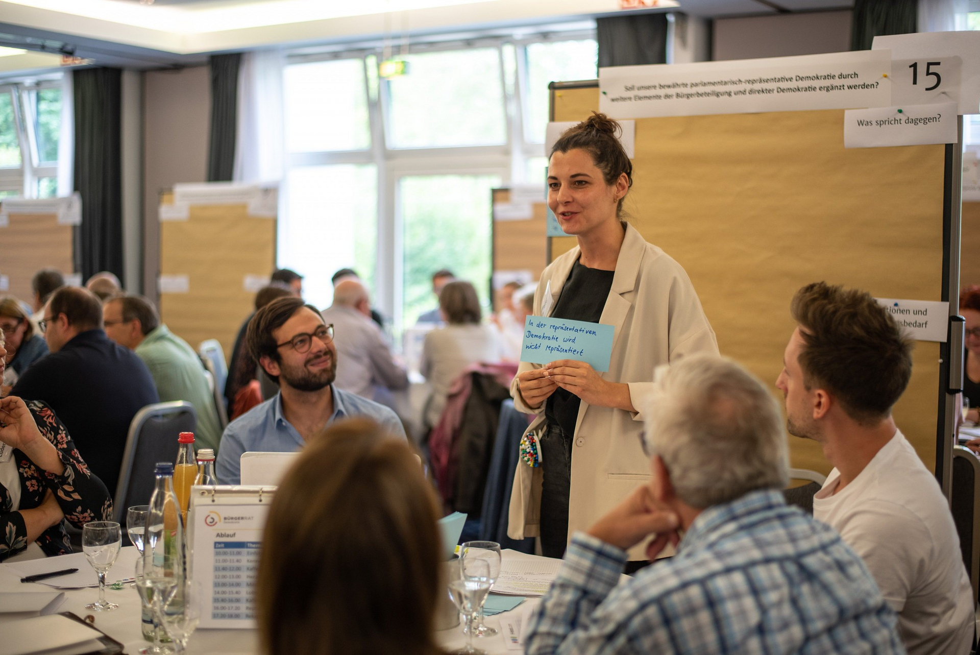 Die Erfahrung, gehört zu werden und ermächtigt zu sein, über sein Land mitzubestimmen, verändert einen Menschen. Der Film zeigt, was Teilhabe mit politisch engagierten Menschen aber vor allem auch Skeptikern, Wutbürgern oder Entscheidungsunwilligen macht: Ob der junge, reflektierte Student aus Dresden, der unpolitische Harley Davidson Liebhaber aus Schleswig-Holstein, der jetzt mal in der ersten Reihe stehen will, um zu meckern, die bekennende AfD-Wählerin aus Nürnberg oder die immer schon politikinteressierte Schützenkönigin aus Mecklenburg-Vorpommern. Sie und weitere Bürger:innen stehen stellvertretend für unterschiedliche Milieus und Meinungen in ganz Deutschland und gewähren im Film einen Einblick in ihr privates Leben und teilen offen und gerade heraus ihre persönliche Meinung zu den großen politischen Fragen.