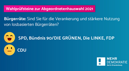 Mehr Demokratie hat die Berliner Parteien nach ihrer Haltung zu zufällig gelosten Bürgerräten gefragt. Hier die Antworten.