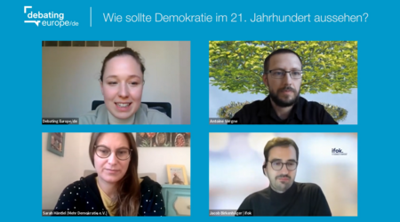 Wie sollte Demokratie im 21. Jahrhundert aussehen? Mit dieser Fragestellung diskutierten Jacob Birkenhäger (ifok), Sarah Händel (Mehr Demokratie) und…