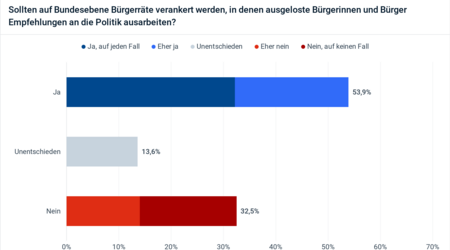 Laut einer aktuellen Umfrage sind 53,9 Prozent aller Deutschen für bundesweite Bürgerräte. Breite Zustimmung dazu gibt es auch in allen 299…