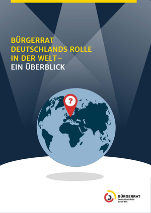„Deutschlands Rolle in der Welt“ – das ist das Thema des zweiten bundesweiten gelosten Bürgerrats. Wie schon der Bürgerrat Demokratie von 2019 wird auch der neue Bürgerrat initiiert, finanziert und organisiert von Mehr Demokratie, in Kooperation mit der Initiative Es geht LOS. Diesmal findet er komplett online statt und bringt damit wieder neue Erkenntnisse. Bundestagspräsident Wolfgang Schäuble hat die Schirmherrschaft übernommen und der Ältestenrat des Bundestags befürwortet das Demokratie-Experiment, ist er doch nicht nur am Thema, sondern auch am Instrument Bürgerrat interessiert. Am 19. März sollen die Ergebnisse an den Bundestagspräsidenten und die Fraktionen übergeben werden.