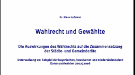 In einer von dem Kölner Sozialwissenschaftler Dr. Klaus Hofmann für die Initiative "Mehr Demokratie" erstellten quasi-repräsentativen Studie wurden nun erstmals in größerem Umfang die Auswirkungen von Kumulieren und Panaschieren auf die personelle Zusam-mensetzung der Gemeinderäte untersucht. Durch eine Analyse der letzten Kommunal-wahlen in Bayern, Hessen und Niedersachsen wurde hierbei auch die Ausprägung der Änderung der Parteilisten durch Wahlrecht und Wähler ermittelt. Ein Ergebnis: besonders starke Auswirkungen hat die hessische Variante von Kumulieren und Panaschieren.