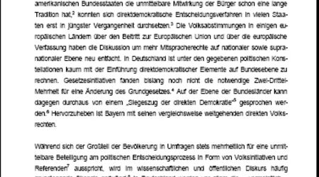 Fazit der lesenswerten Studie: weder aus theoretischer noch aus experimenteller Sicht lässt sich eine fundamentale Ablehnung von Sachabstimmungen rechtfertigen. Wichtig ist aber die Gewährleistung eines angemessenen Informationsniveaus, unter anderem durch die Zuschickung einer Informationsbroschüre. Dies ist in vielen Bundesländern, der USA und der Schweiz Standard. Darüber hinaus bedarf es des freien Zugangs zu Informationen auf einem freien Informationsmarkt ohne Meinungsmonopole. Und nicht zuletzt bedarf es eines ausreichenden zeitlichen Vorlauf, um eine breite öffentliche Debatte zu ermöglichen.