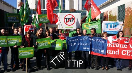 Unter dem Motto „TTIP & CETA stoppen! Für einen gerechten Welthandel“ haben heute etwa 250.000 Menschen in Berlin gegen die Freihandelsabkommen…