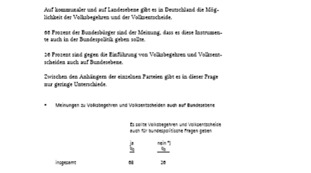 In einer repräsentativen Umfrage antworteten über zwei Drittel (68 Prozent) der Befragten mit „Ja“ auf die Frage, ob es Volksbegehren und -entscheide…