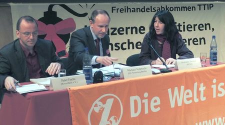 Bei einer Podiumsdiskussion zum Freihandelsabkommen TTIP entfachte sich eine lebendige Debatte rund um die grundlegende Kritik des Bündnis "TTIP…